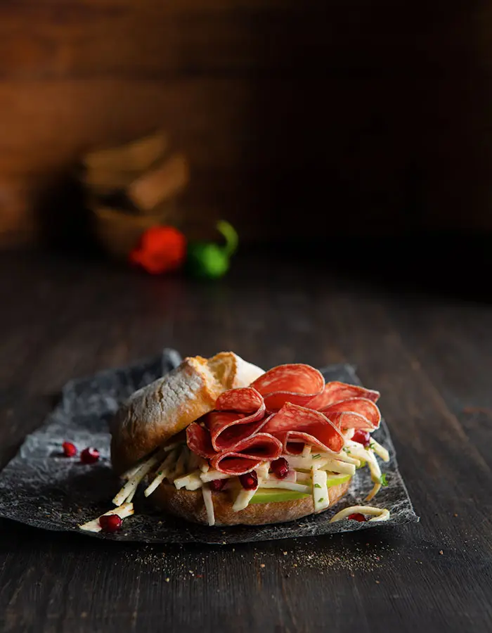 Een verrassende combinatie van zoet en zuur, met de unieke crunch van knolselder maakt van dit broodje een smaakexplosie die onthouden wordt!