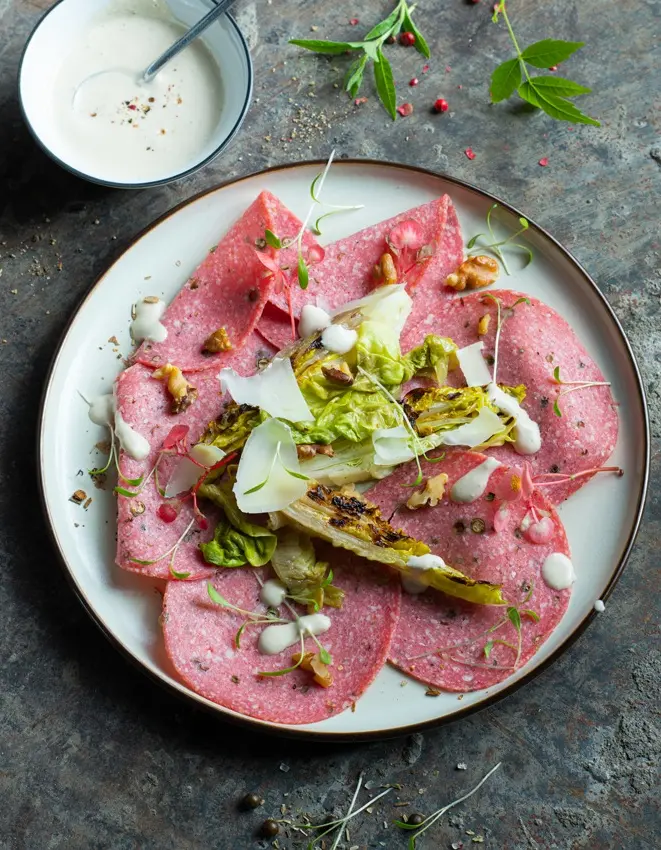 - Carpaccio Van 100% Kippensalami Met Peper en Caesardressing