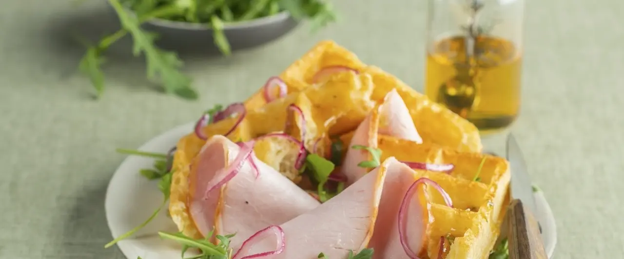Verwarm de hartige wafels volgens de instructies op de verpakking, waardoor ze knapperig en warm worden.