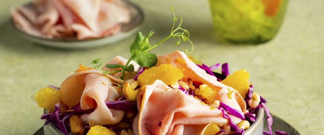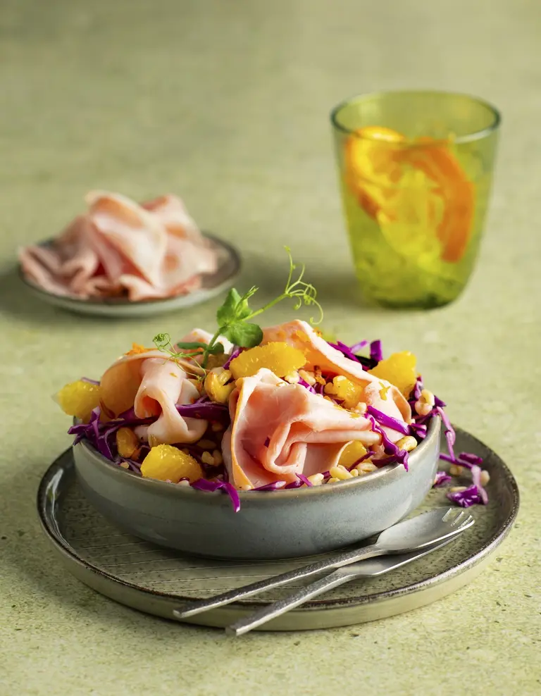 Dit verfijnde gerecht staat op 15 minuten op tafel en combineert de onevenaarbare Leielander met de knapperige textuur van geraspte rode spitskool, verrijkt met blé en de frisse accenten van sinaasappel.