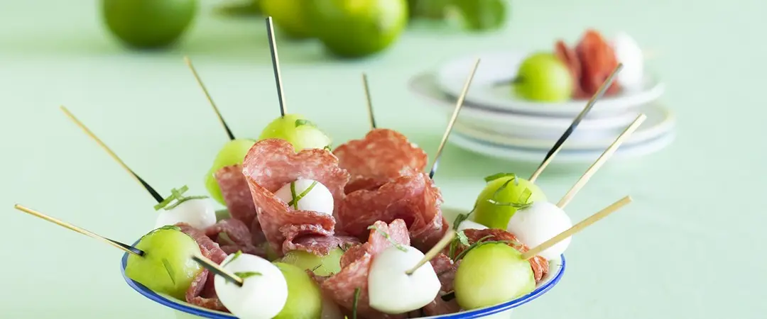 - Kalkoensalami Pepino Met Mozzarella en Meloen