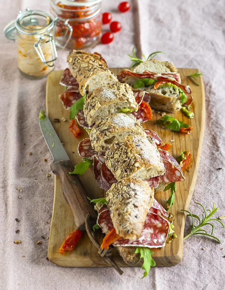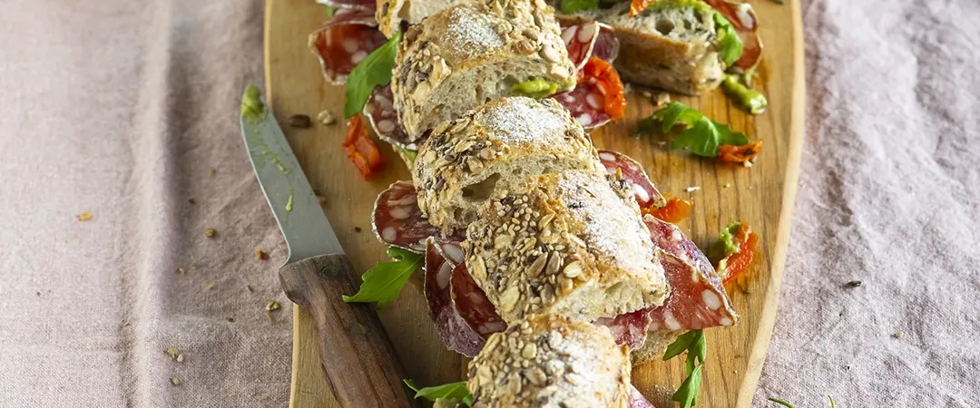 Dit recept combineert eenvoud met karakter. De robuuste, licht gerookte Ardense charcuterie wordt heerlijk in balans gebracht met romige guacamole, pittige rucola en zoete halfgedroogde tomaatjes. Afgewerkt met een smeuïge spread van mayonaise en rode pesto is dit een broodje boordevol karakter, ideaal voor lunchservice.