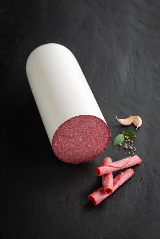 Extra staat voor de hoogste kwaliteit. Alleen de allerbeste grondstoffen worden gebruikt. De fijne korrel met een helder contrast zorgt voor een perfecte presentatie op snee. Extra wordt ook steeds afgevuld in een natuurdarm die met de hand wordt geknoopt. Een topsalami die in uw assortiment niet mag ontbreken! Extra bestaat in 3 variëteiten: zonder look, met look en Hongrois.